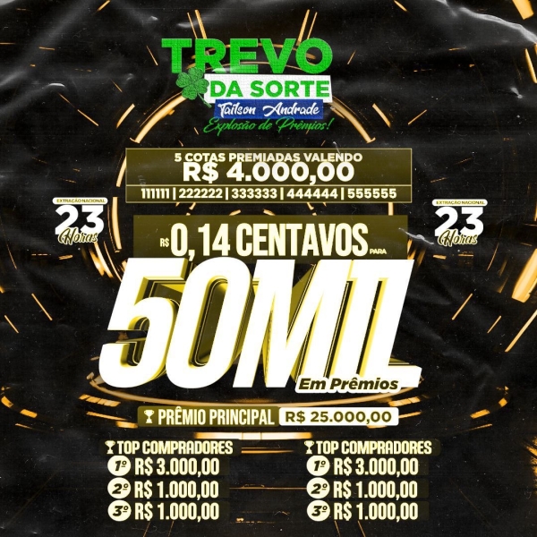 5 cotas premiadas no valor de 4 mil reais