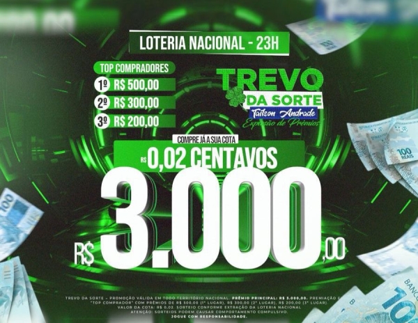 2 centavos pra 3 mil reais no seu pix, sorteio hoje as 23 horas loteria nacional