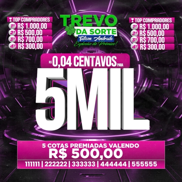5 cotas no valor de 500 reais